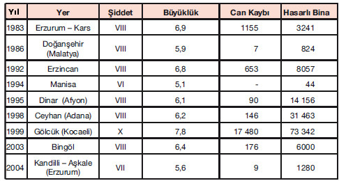 Ayrıca ülkemizde 3 ile 10 yıl arasında can kayıplarına sebep olan depremlerin yaşandığını görüyoruz.